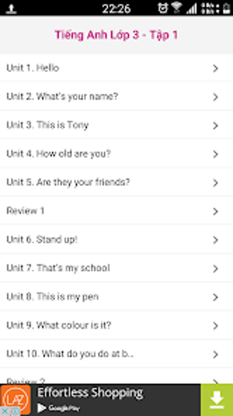 Tiếng Anh Lớp 3 - English 3 T1 adalah aplikasi edukasi yang dirancang khusus untuk membantu siswa kelas 3 dalam mempelajari bahasa Inggris. Aplikasi ini menyediakan berbagai materi pembelajaran yang sesuai dengan buku teks, termasuk audio untuk setiap pelajaran yang dapat diakses secara offline. Dengan tampilan yang user-friendly, siswa dapat dengan mudah mendengarkan dan belajar dari setiap bagian materi yang disajikan.